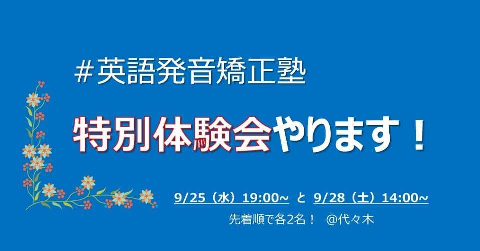 英語発音矯正塾 特別体験会 9 25 9 28 試してから決めたい方へ 日本人の話す美しい英語 の発音筋力トレーニング 教え方研究所 Note